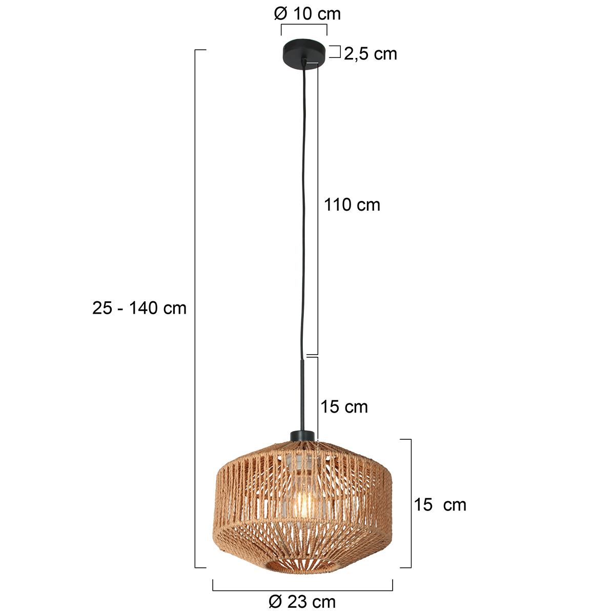 Le pendentif noir de la série Sparkled Light a une apparence chaleureuse et naturelle, combinée avec l’abat-jour en corde mesurant 23 par 15,5 centimètres. Le luminaire est réglable en hauteur et présente une finition noire qui se marie facilement avec divers styles. La douille E27 offre de l’espace pour une variété de sources lumineuses.