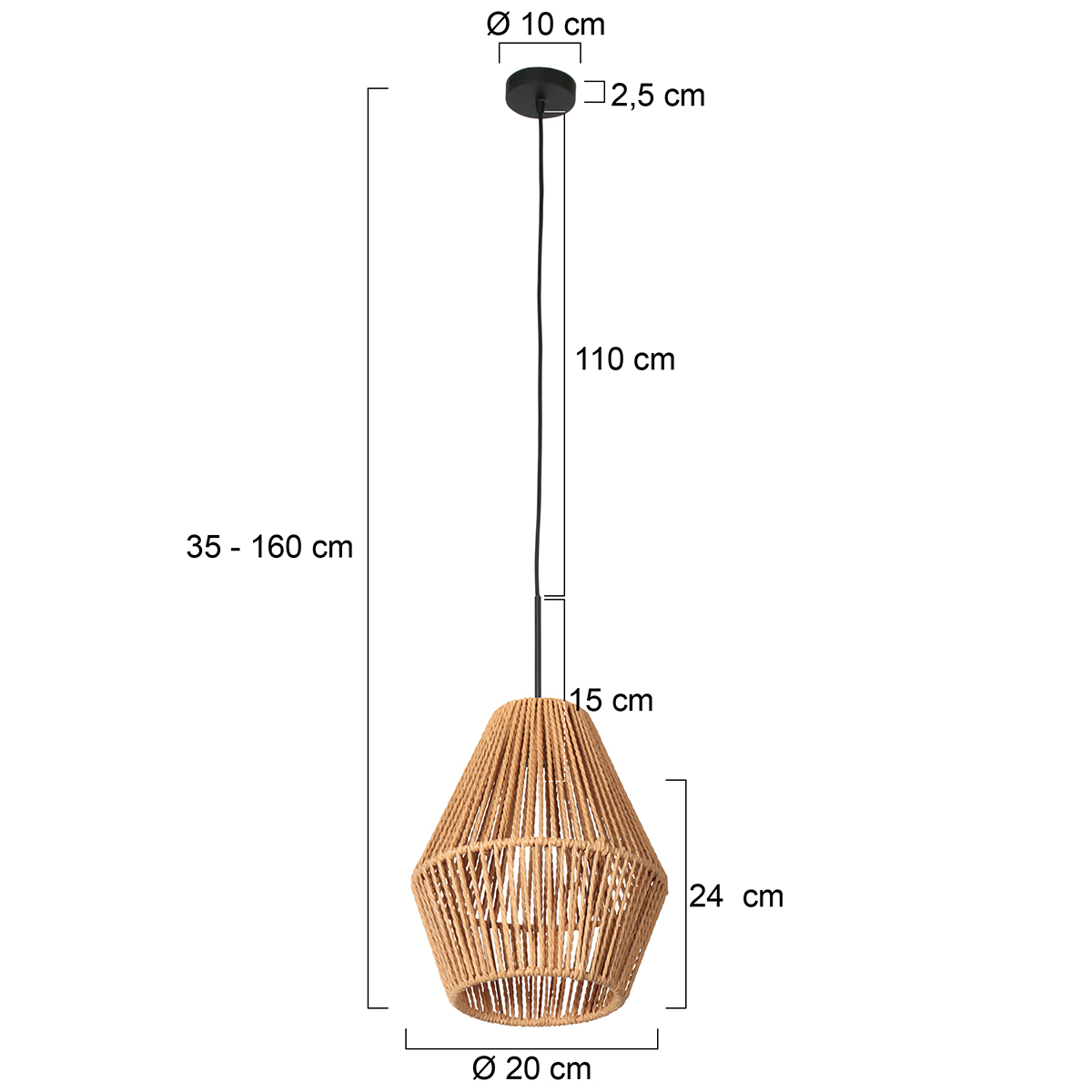 Le pendentif noir de la série Sparkled Light constitue une combinaison unique avec l’abat-jour en corde plus haut de 20 sur 24 centimètres. Le cadre en métal réglable permet de placer la lampe à presque n’importe quelle hauteur souhaitée. Le support E27 rend le pendentif compatible avec toutes les sources de lumière courantes.