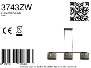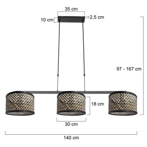 Suspension noire avec trois lumières et abat-jour en osier Steinhauer Stang