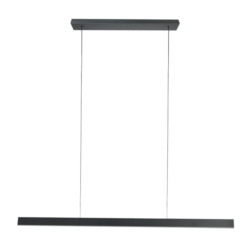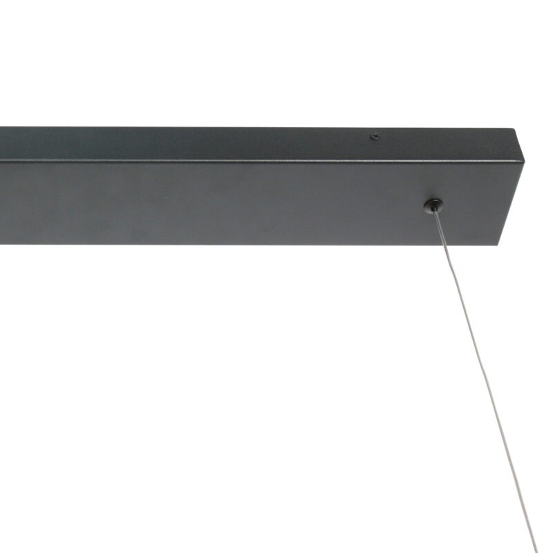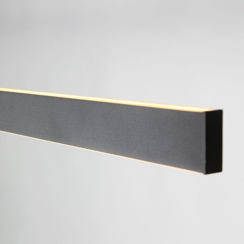 Cette moderne suspension noire d’une longueur de 119 cm, d’une hauteur de 5 cm et d’une épaisseur ultra-mince de 2 cm allie un design épuré à une fonctionnalité polyvalente. La lampe est suspendue subtilement à deux câbles en acier réglables en hauteur (30–150 cm), ce qui vous permet de l’adapter facilement à l’espace – parfait au-dessus d’une table à manger, d’un îlot de cuisine ou d’un plan de travail.