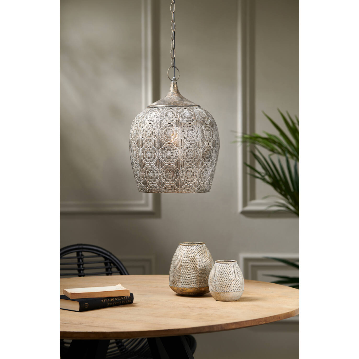 La suspension Light & Living Kadiri combine une esthétique orientale avec une forme ronde dorée. Cette lampe à un point lumineux est idéale pour les salles à manger, les chambres et les salons. La construction en métal offre un look exotique et élégant. Le culot E27 permet un remplacement facile de la source lumineuse. Ajoutez une touche de style à votre intérieur pour une ambiance unique.
