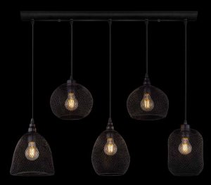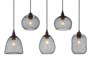 La série de suspensions ANYA fait preuve d’originalité avec sa structure en métal noir et ses cinq éléments suspendus qui se terminent par des connexions E27, entourés d’abat-jours en forme de grille de différentes tailles (diamètre entre 15 et 20 cm). Ajustez l’intensité lumineuse et la couleur selon vos préférences grâce au libre choix des sources lumineuses. Utilisation recommandée d’ampoules LED.