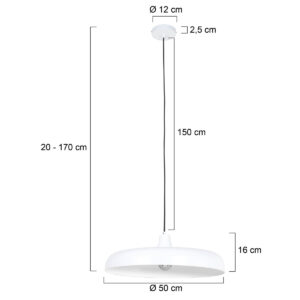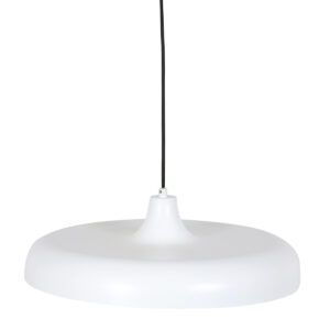 La suspension blanche de la série Krisip est un élément de décoration élégant avec une forme de plat de 55 cm de diamètre. La lampe est suspendue à un cordon noir réglable de 40 à 170 cm. Compatible avec une source lumineuse E27 jusqu’à 60 Watts (non inclus). Grâce à la possibilité d’utiliser une source lumineuse dimmable, la lampe est facilement combinable avec un variateur externe.