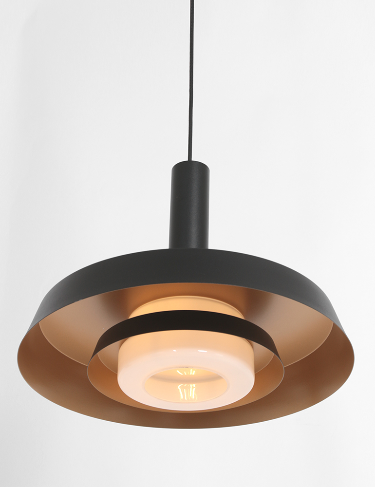 Suspension rétro Anne Lighting Flinter noir avec intérieur doré