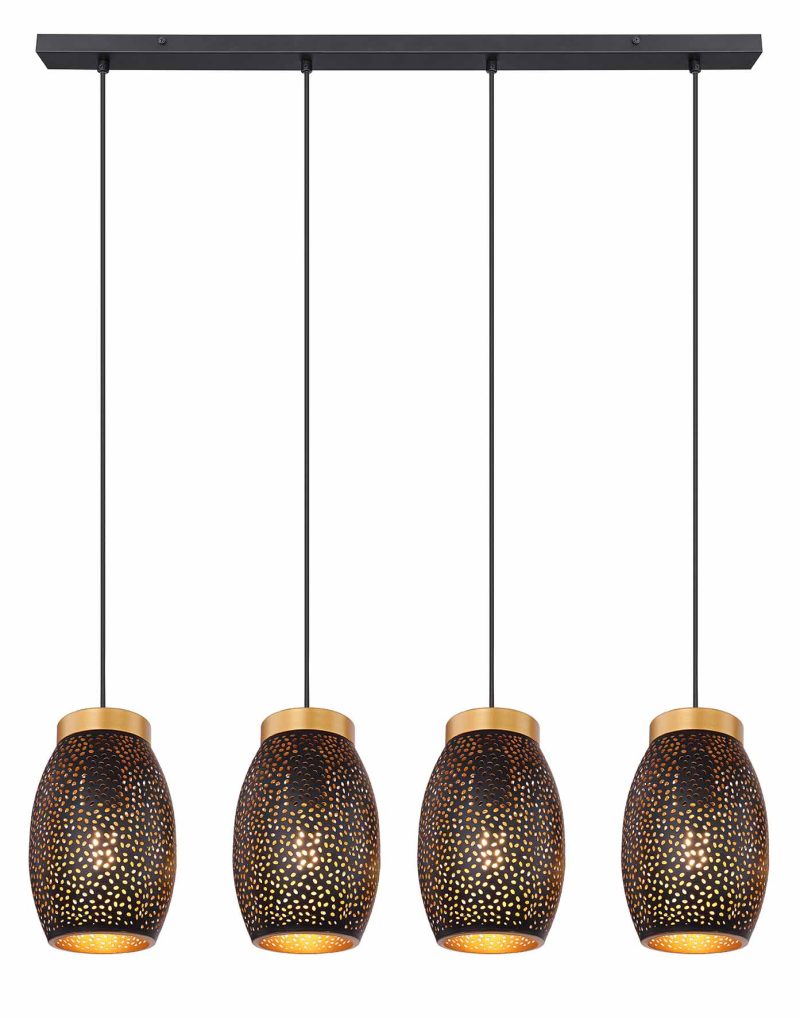 Adoptez la tendance velours actuelle avec la magnifique suspension NARRI qui éclaire votre intérieur d’une manière charmante. Cette lampe d’intérieur, avec une projection de 120 cm, dispose de quatre abat-jours ornés de découpes décoratives uniques et d’un intérieur doré qui crée une ambiance chaleureuse. Grâce au connecteur E14, vous pouvez ajuster l’intensité et la couleur de la lumière vous-même (4 x max.40W). Soyez conscient de l’économie d’énergie et de la durabilité et envisagez d’utiliser des ampoules LED.