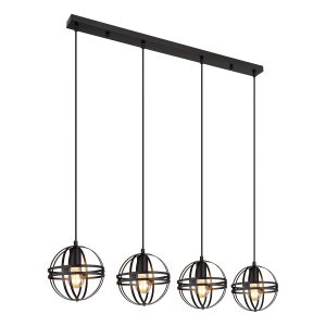 Ce lustre moderne se distingue par son schéma de couleurs élégant et ses matériaux. À partir d’un montage au plafond étroit de 1 m de long, un câble de 1,2 m descend vers quatre connexions E27, chacune entourée d’un boîtier métallique rond en noir (Ø20 cm). Avec ces connexions, vous pouvez ajuster la couleur de la lumière et la luminosité selon vos souhaits jusqu’à un maximum de 60 watts. Pour économiser de l’énergie et prolonger la durée de vie, des ampoules LED sont recommandées.