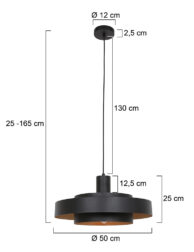 Optez pour ce lampadaire rétro et suspendez-le au-dessus de la table à manger ou de la table basse. Grâce aux fines anneaux qui composent la lampe, vous avez un éclairage qui s’intègre harmonieusement dans votre intérieur. La couleur noire et l’intérieur doré apportent un accent frappant à l’ensemble. La lampe est réglable en hauteur.