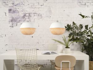 Suspension ronde blanche en métal/bambou GOOD & MOJO Mekong