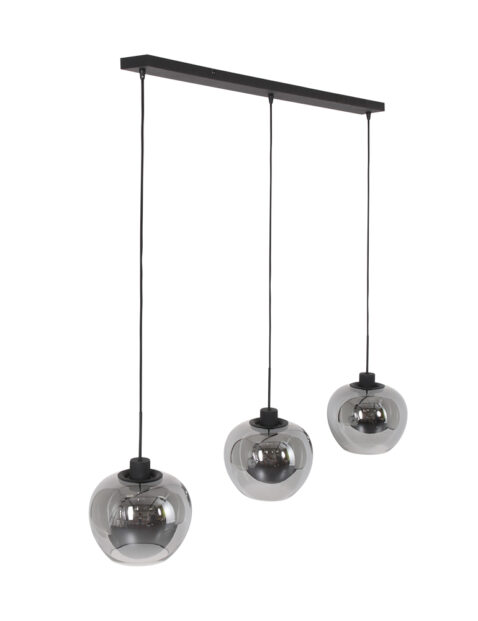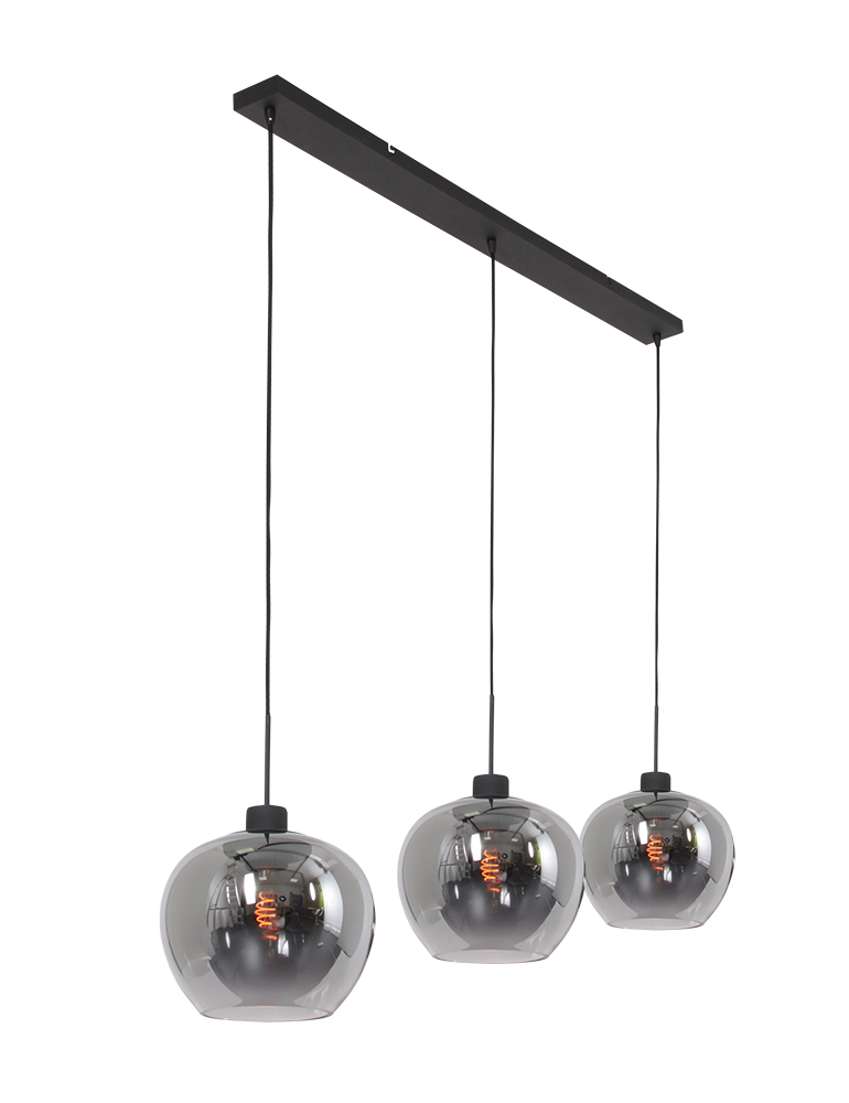 Suspension moderne 3 lumières Steinhauer Lotus verre fumé et noir