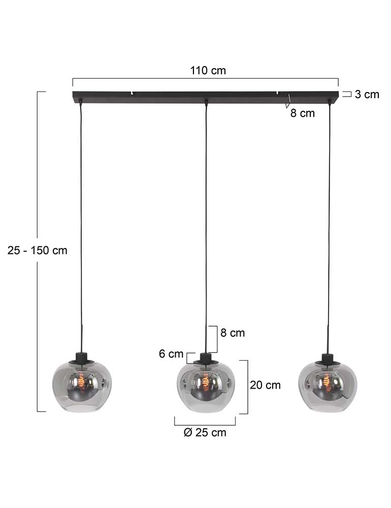 Transformez chaque repas en une expérience conviviale avec le plafonnier moderne Lotus de Steinhauer. La lampe est dotée de trois abat-jours en verre fumé, qui diffusent une lumière subtile et chaleureuse. Parfait au-dessus d’une table à manger rectangulaire ! Les trois lampes sont suspendues à une largeur de 132 cm et sont réglables en hauteur entre 25 et 150 cm. La lampe dispose de trois douilles E27, adaptées aux sources de lumière jusqu’à 40 watts par douille (non inclus).