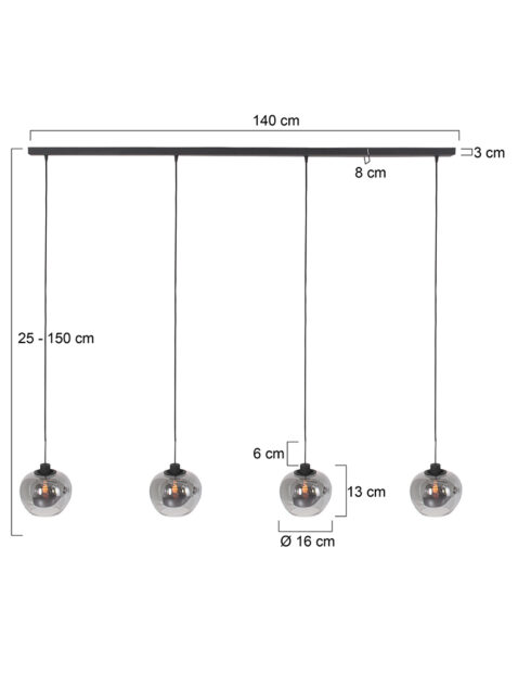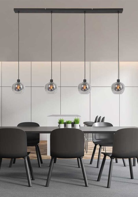 Suspension 4 lumières Steinhauer Lotus verre fumé et noir