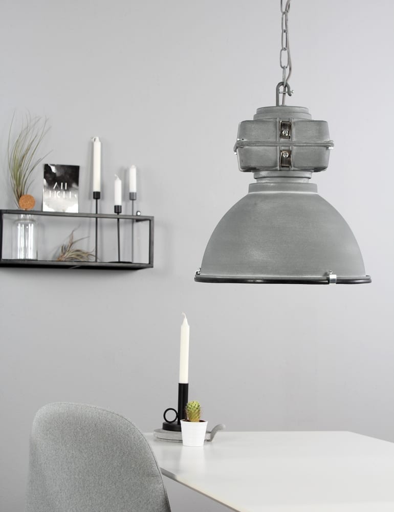 Des amis viennent-ils ce soir ? Allez-vous dîner ensemble à votre nouvelle table à manger ? Mettez en valeur ce luminaire suspendu gris béton Densi. Suspendez-en deux côte à côte pour accentuer le style industriel. Vous pouvez être sûr que vos amis apprécieront la magnifique lumière d’ambiance de ce lampadaire industriel !