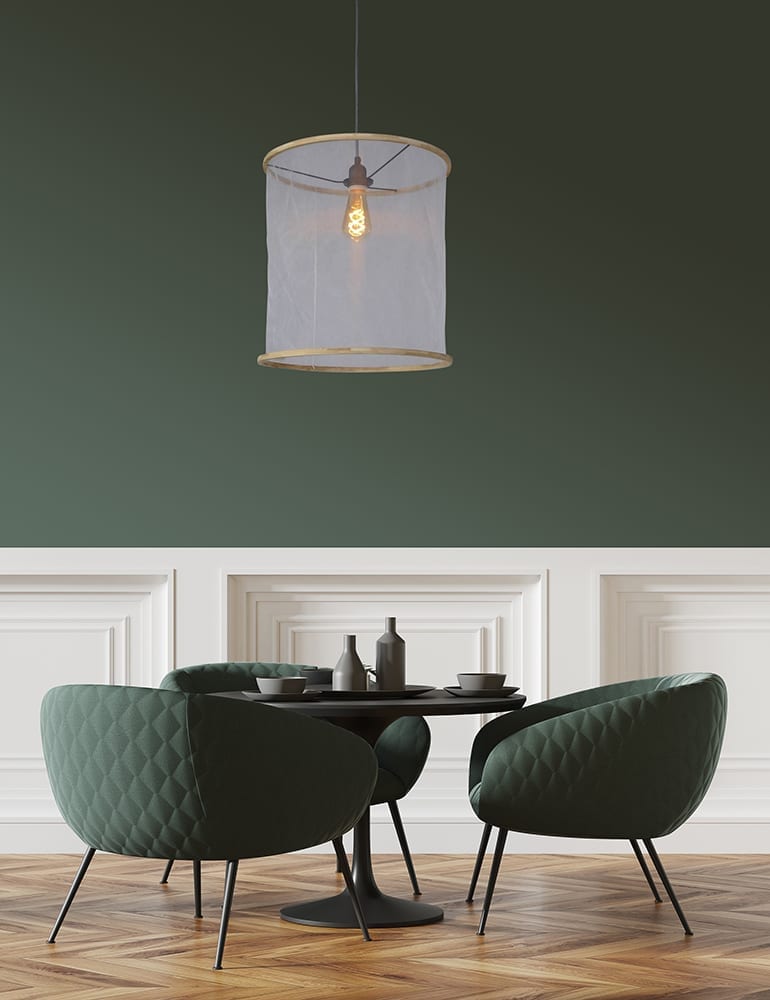 Cette sublime suspension conviendra parfaitement à un intérieur chaleureux et convivial. La transparence de son abat-jour permet une diffusion optimale de la lumière, et ce, sans vous éblouir. Composée d’un arceau en bois recouvert d’un tissu en coton transparent, le style de cette suspension est intemporel. Dans une chambre d’ami ou d’enfant, le modèle Finn trouvera sa place sans difficulté.