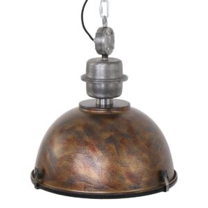 Bikkel Steinhauer obtient encore un dix. Leur “Bikkel” est un lampadaire suspendu robuste et imposant. Cette lampe d’usine est en forme de demi-sphère. Elle est suspendue à une chaîne robuste avec des éléments de couleur zinc, y compris un mousqueton à vis. Son mélangeur est fixé avec trois pinces. L’extérieur est peint en brun avec un effet semblable à du cuivre martelé. Ce “Bikkel” se marie parfaitement avec votre décoration rétro ou champêtre !