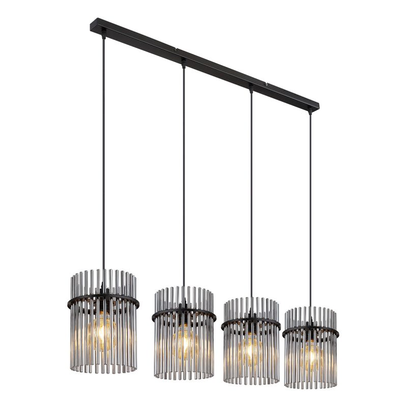 Ce pendant lumineux élégant de la série Gorley s’inspire de son design moderne. Quatre câbles noirs de 1,4 m de long descendent d’un montage rectangulaire au plafond vers un raccord E27 chacun. Ceux-ci sont équipés d’abat-jours cylindriques bien formés en tiges de verre et vous offrent la possibilité de choisir la couleur de la lumière et la luminosité jusqu’à une puissance maximale de 60 watts. En raison de la longue durée de vie et des économies d’énergie, nous recommandons des ampoules LED.