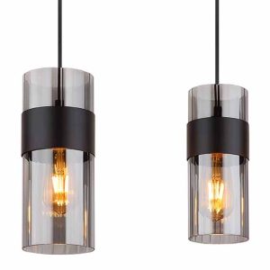 Cette lampe suspendue contemporaine avec un rail droit et quatre cylindres en verre fumé suspendus offre une solution d’éclairage élégante pour chaque maison. Avec une longueur totale de 920 mm et une largeur de 123 mm, cette lampe dispose de quatre douilles E27, chacune adaptée pour des ampoules jusqu’à 60W. Le boîtier en métal noir mat et les verres teintés créent une diffusion de lumière agréable et un aspect élégant. Idéale au-dessus d’une table à manger, dans un salon ou un hall d’entrée, cette lampe ajoute un design moderne et épuré à votre intérieur. Créez une ambiance chic et moderne avec cette lampe suspendue en métal noir et en verre fumé cylindrique.