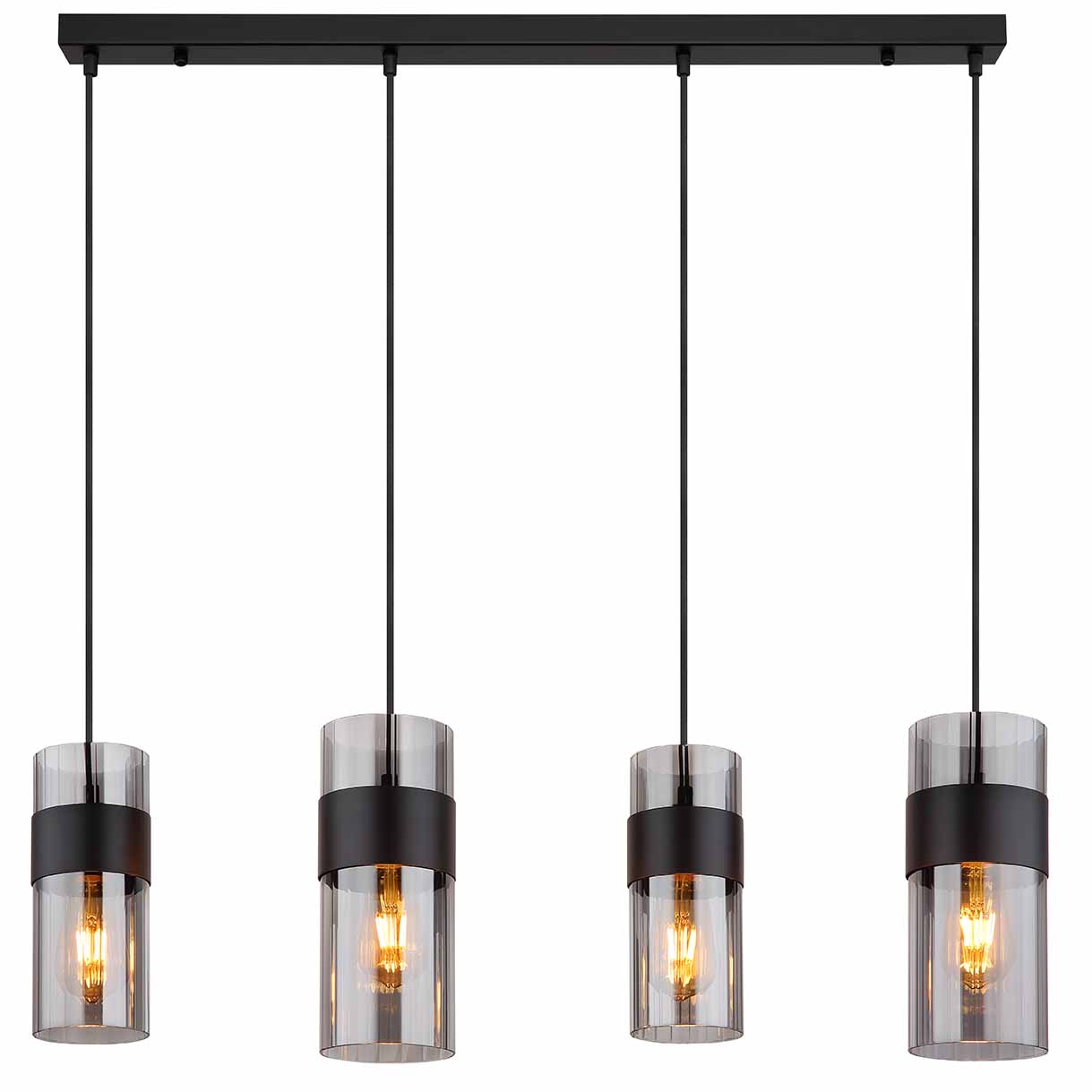 Cette lampe suspendue contemporaine avec un rail droit et quatre cylindres en verre fumé suspendus offre une solution d’éclairage élégante pour chaque maison. Avec une longueur totale de 920 mm et une largeur de 123 mm, cette lampe dispose de quatre douilles E27, chacune adaptée pour des ampoules jusqu’à 60W. Le boîtier en métal noir mat et les verres teintés créent une diffusion de lumière agréable et un aspect élégant. Idéale au-dessus d’une table à manger, dans un salon ou un hall d’entrée, cette lampe ajoute un design moderne et épuré à votre intérieur. Créez une ambiance chic et moderne avec cette lampe suspendue en métal noir et en verre fumé cylindrique.