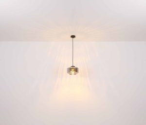 Ce beau plafonnier s’inspire d’un design exceptionnel. Quatre câbles de 1,2 m sortent d’un support de plafond étroit de 1 m de long, chacun se terminant par un culot E27 avec des abat-jours en verre fumé élégant (Ø 18 cm). Avec les culots E27, vous pouvez choisir vous-même la couleur et la luminosité de la lumière jusqu’à une puissance maximale de 40 watts. En raison de leur longue durée de vie et de leur économies d’énergie, nous recommandons des ampoules LED.
