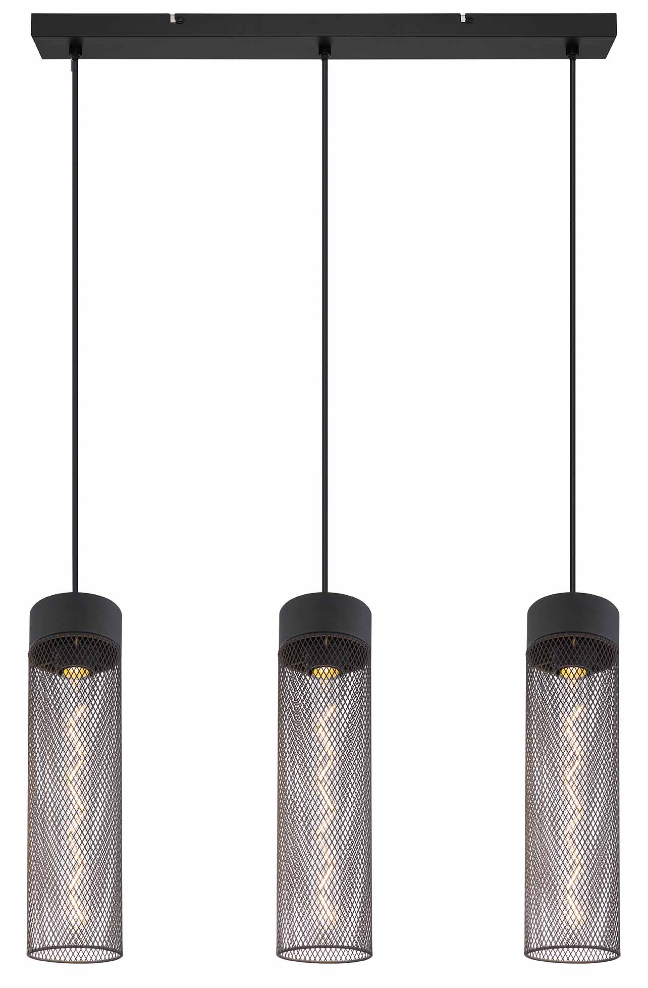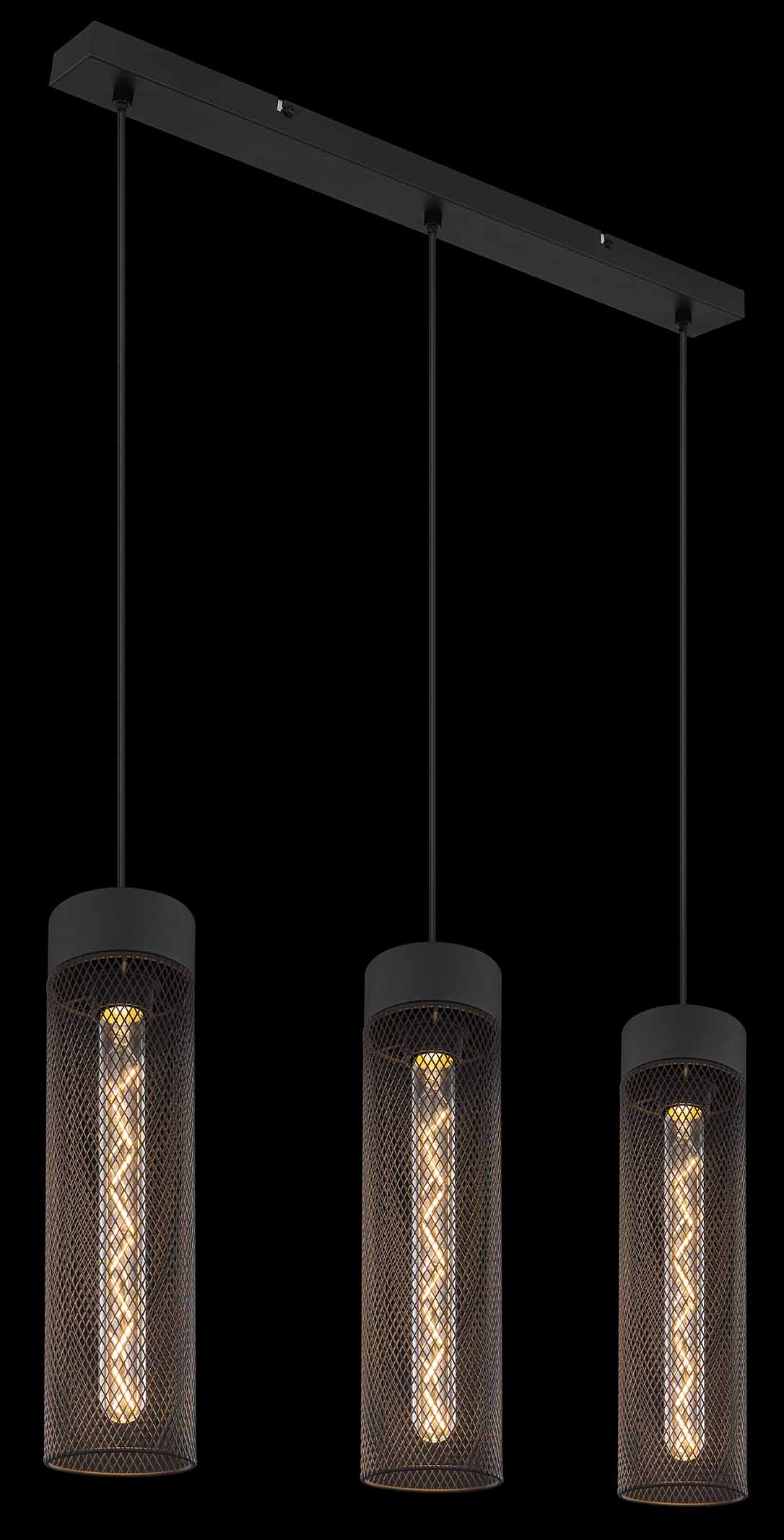 Ce plafonnier de la série HANS est un ajout élégant à votre intérieur. Le plafonnier de 60 cm de long se compose d’un cube en métal noir mat allongé, auquel sont suspendus trois câbles noirs avec un grillage en métal cylindrique. Les connexions E27 vous permettent de déterminer la couleur et la luminosité de la lumière jusqu’à une puissance maximale de 40 watts. De plus, vous pouvez ajuster la hauteur du plafonnier lors de l’installation jusqu’à 120 cm. Avec d’autres modèles de la même série, vous pouvez créer une ambiance stylée dans votre intérieur et compléter l’ensemble.