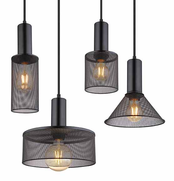 Suspensions rétro en grillage métallique noir Globo Jedd
