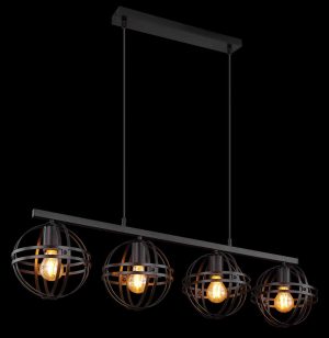 Cette suspension de la série TAMARA est réalisée en métal noir mat, suspendue par un câble en PVC et mesure 950x200x1200mm. Les abat-jours sont livrés démontés et nécessitent un montage. Convient pour quatre ampoules E27 avec un maximum de 60 watts à 230 volts, à acheter séparément. La hauteur de la suspension peut être réduite selon les besoins.