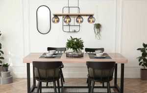 Cette lampe suspendue innovante de la série Diethild impressionne par son design. Avec deux cordons noirs mats qui s’étendent jusqu’à une barre de nivellement de 85 cm sur laquelle sont fixés quatre douilles E27 avec des abat-jours en verre fumé. Idéale pour régler la couleur et la luminosité jusqu’à 25 watts. Recommandée pour une utilisation avec des ampoules LED pour une efficacité énergétique.