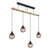 La lampe suspendue RICHARD est une source de lumière impressionnante qui plonge chaque pièce dans une atmosphère chaleureuse et charmante. La barre droite, en métal noir mat et en bois naturel, donne à la lampe une touche moderne tout en restant vintage. À l’intérieur de la lampe suspendue allongée, des boules en verre avec un pendentif en cristal scintillant sont fixées. Cela crée une réflexion envoûtante de la lumière et apporte une touche de luxe et d’élégance. La guirlande en verre en forme de parapluie est finie dans une teinte fumée qui filtre doucement la lumière et crée une ambiance agréable. L’apparence élégante de la lampe suspendue RICHARD est complétée par des cristaux en plastique brillants, fixés aux boules en verre. Avec une longueur de 950 mm et une largeur de 150 mm, la lampe suspendue s’intègre facilement dans n’importe quel espace. Le câble offre la liberté de l’enrouler autour de poteaux ou de poutres en bois selon vos souhaits, permettant un ajustement individuel de l’armature. Laissez-vous inspirer par la lampe suspendue RICHARD et donnez à votre maison une touche unique de style et d’élégance.
