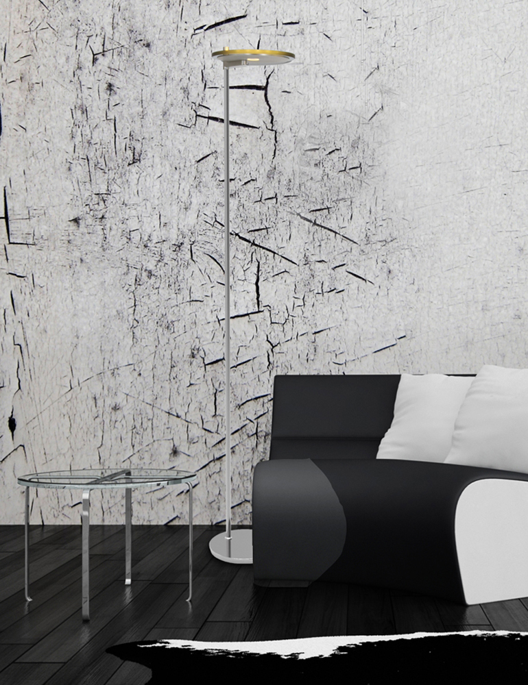 Ce lampadaire en acier est doté d’un abat-jour uplight. Cela désigne un type de conception d’abat-jour et d’utilisation du lampadaire. En effet les lampadaires considérés comme dotés d’un éclairage uplight sont parfaits pour une lumière d’ambiance. Dirigée vers le haut, la lumière se reflète sur le plafond blanc et baigne la pièce de lumière. Steinhauer a conçu ce lampadaire en acier ultra pratique pour vous. C’est la gamme Turound.
