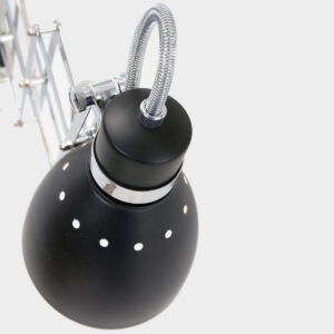 Quel joli modèle, ce “Spring” de Steinhauer ! Te souviens-tu de ces miroirs de barbier d’autrefois ? Avec un bras en ciseaux en zigzag ? Tu reconnaîtras certainement ce spot mural ajustable. Sur une plaque murale rectangulaire noire se trouve le bras en ciseaux qui tient un abat-jour noir. Le bras en ciseaux et les accents sont de couleur chrome. Ce spot mural s’intègre parfaitement dans des intérieurs modernes et rétro. Ton livre de lecture ou ton bureau n’ont jamais été si bien éclairés.