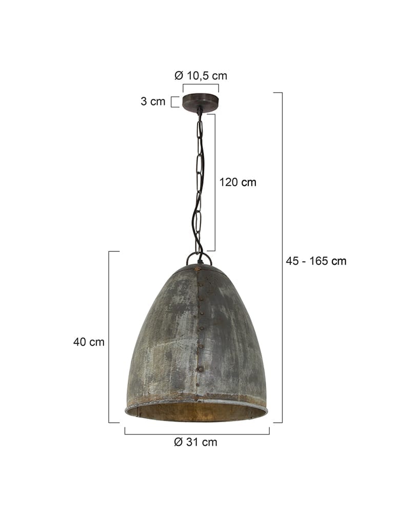 De Eelkje is een hanglamp van het merk Light en Living. Een hip merk met veel verschillende soorten stijlen. Deze ei vormige hanglamp past bij een industrieel interieur. De kap heeft een diameter van 31 centimeter. De verweerde hanglamp is vervaardigd uit metaal. De doorleefde kleur zorgt voor een robuust uiterlijk. Tijdens montage is de lamp naar wens verstelbaar tot maximaal 165 centimeter. De Eelkje beschikt over een E27 fitting en is geschikt voor lichtbronnen tot 60 Watt.