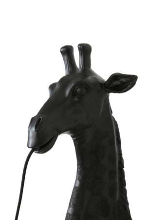 Humour ! Cherches-tu de bonnes vibrations pour ta maison ? Light&Living a conçu cette super cool girafe. Une girafe noire en plastique a dans sa bouche un fil avec une douille de lampe argentée. Tu peux y visser une belle source de lumière selon tes envies, par exemple avec de jolis filaments. Cette applique murale noire mate va chaque jour te dessiner un sourire sur le visage.